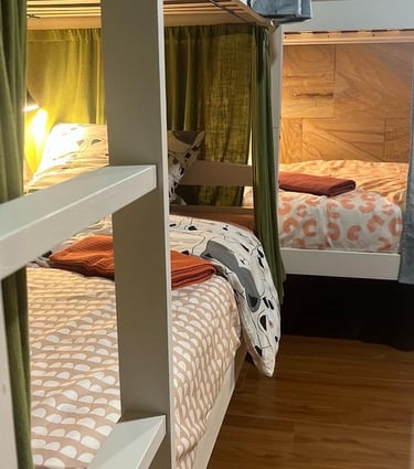 Nos alojamos en habitaciones para 4 o 5 personas con literas y camas individuales. La habitación tiene ducha y cuarto de baño. Los alumnos estarán separados por sexo en las habitaciones.